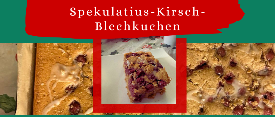 Dieser winterliche Blechkuchen verbindet feines Spekulatiusgewürz mit fruchtigen Kirschen. Der lockere Rührteig bleibt wunderbar saftig, und der Zuckerguss verleiht dem Kuchen eine hübsche, süße Verzierung – ideal für gemütliche Nachmittage in der Weihnachtszeit, oder auch für die festliche Kuchentafel an den Weihnachtstagen.